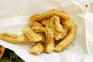 4. 热锅凉油,将鸡皮和白瓜分别炸至金黄酥脆。